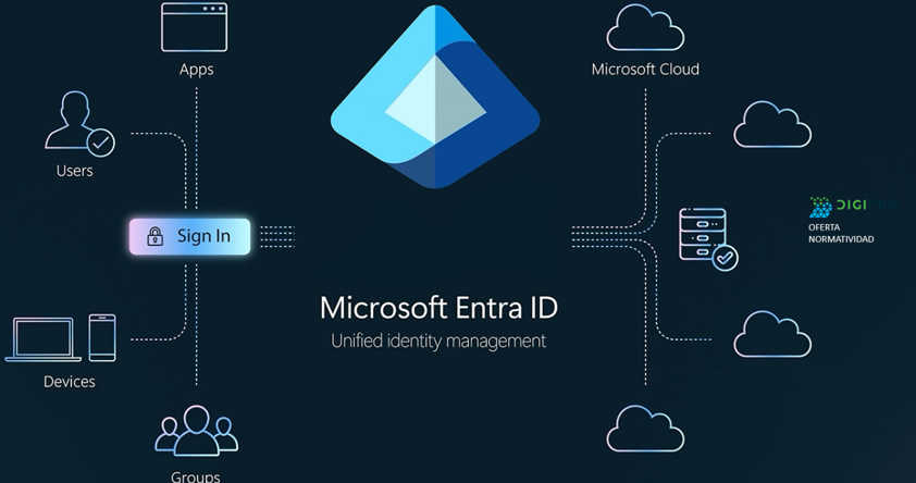 La seguridad de la plataforma es gestionada por Microsoft Entra ID, donde autentica al usuario y da acceso a los recursos empresariales.